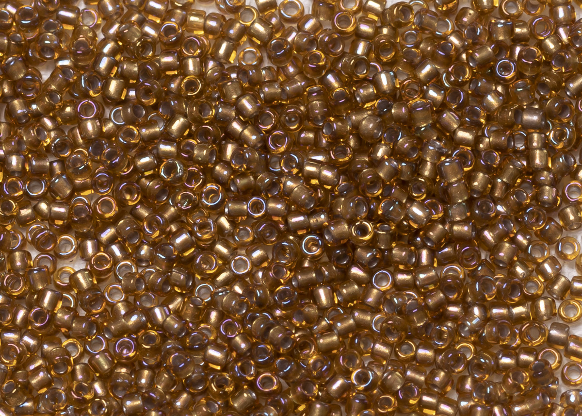 Бисер Япония круглый 15/0 10г 0278 топаз, золотая линия внутри
