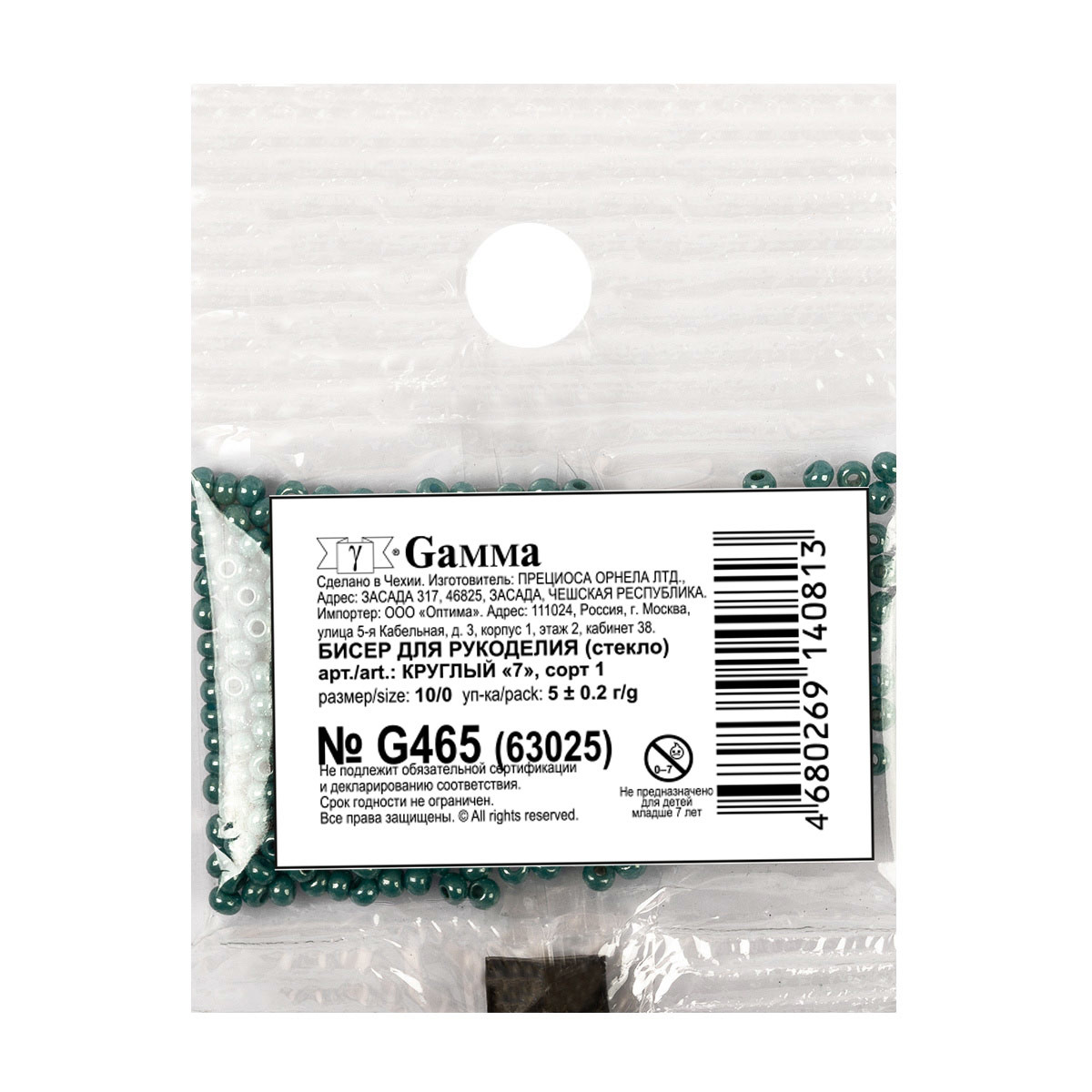 Бисер Чехия " GAMMA" круглый 7 10/ 0 2. 3 мм 5 г 1- й сорт G465 серо- бирюзовый ( 63025 )
