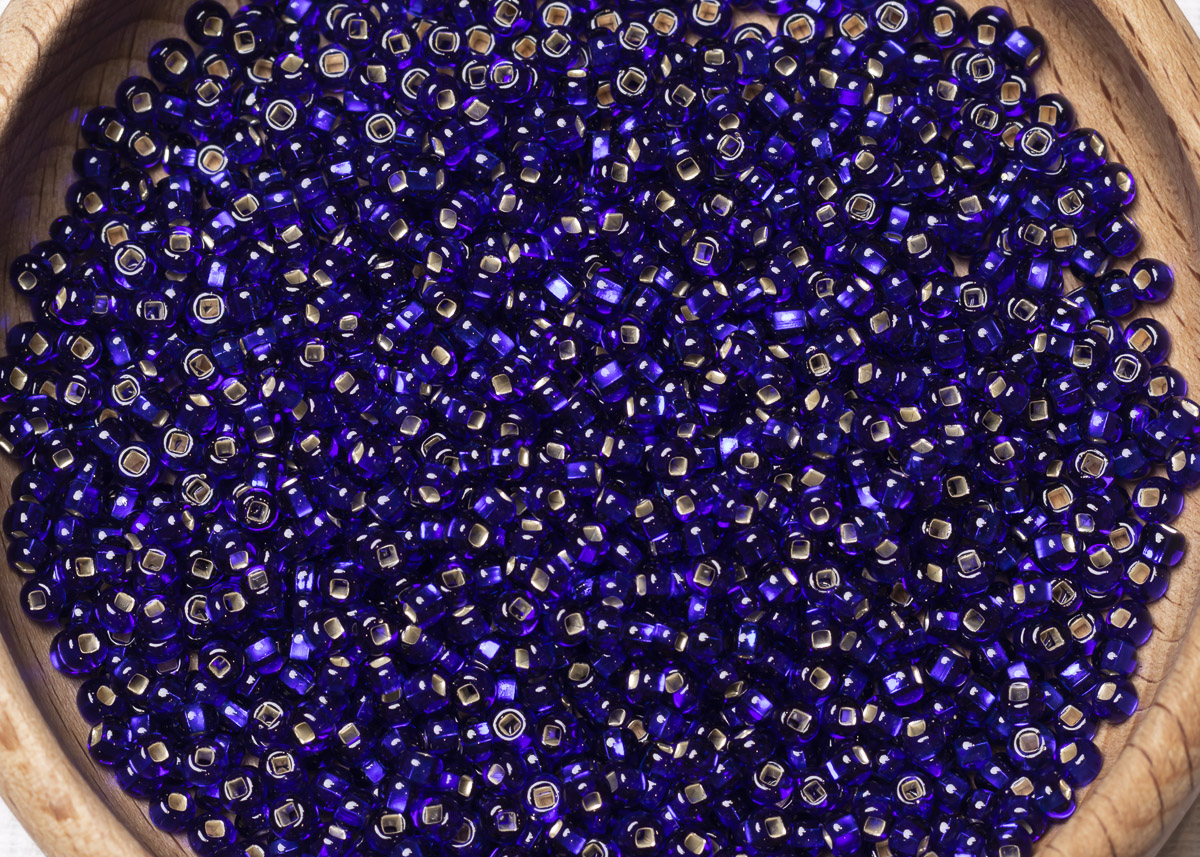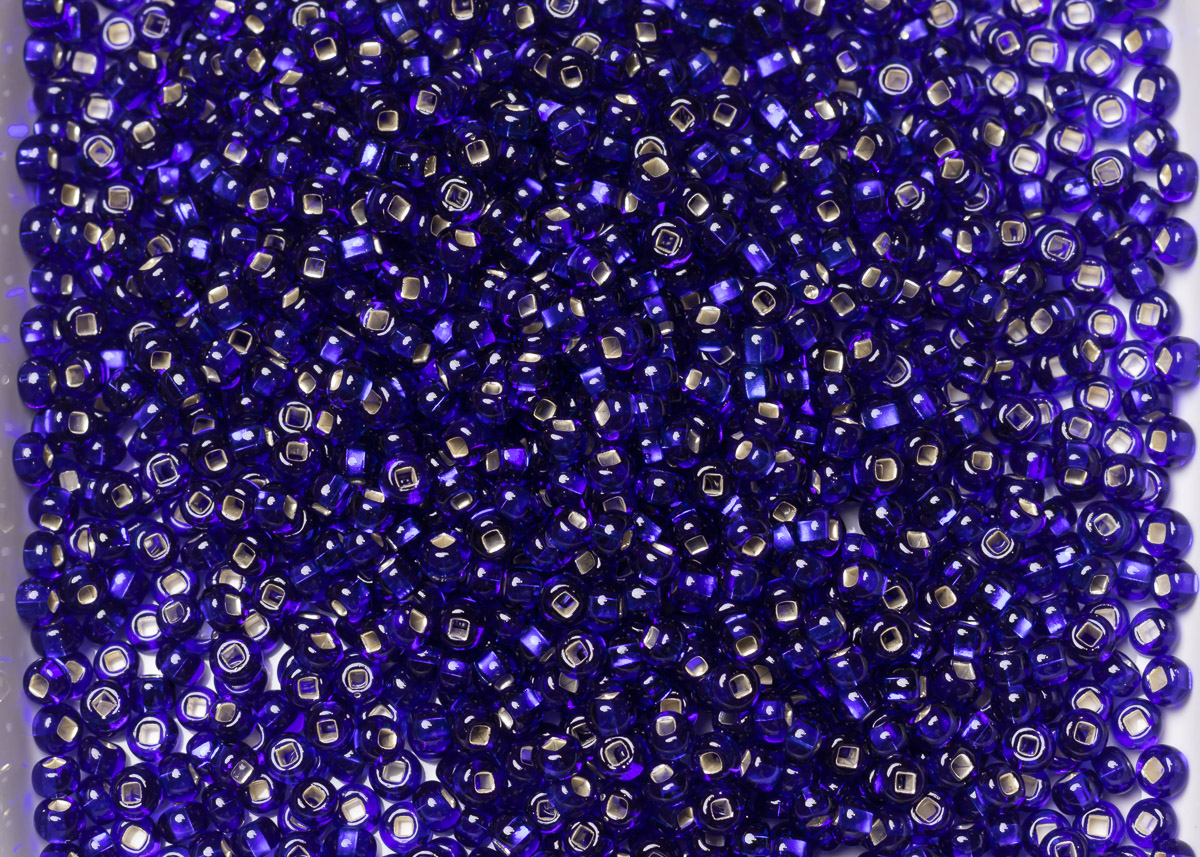 Бисер Чехия круглый 08/0 50 г 37100h прозрачный темно-синий с серебряным прокрасом квадратное отверстие