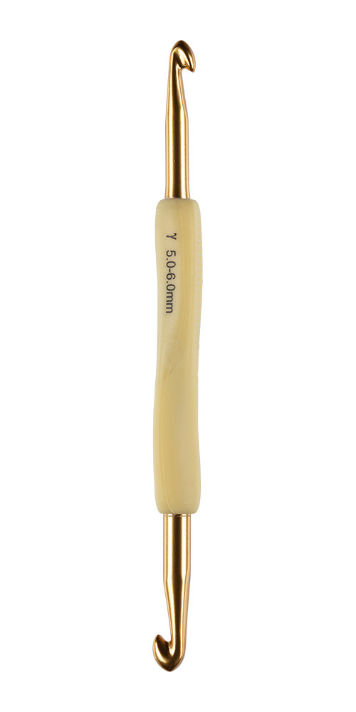 Крючок двухсторонний " Gamma" RHD алюминий d 5. 0 - 6. 0 мм 13. 5 см в блистере. Двухсторонние алюминиевые крючки с прорезиненной ручкой идеально подойдут тем, кто много вяжет. Двусторонние крючки – это два размера в одном, отличный способ сэкономить, занимают меньше места при хранении. Крючки комфортно лежат в руке за счет эргономичной ручки с ребристой поверхностью под пальцы. Благодаря прорезиненной эластичной ручке, крючки не выскальзывают из рук, на пальцах не образуются мозоли. Удобная форма головки легко захватывает нить. Длина головки - 3. 5 см. с двух сторон. Длина ручки - 6. 5 см. Сообщить о неточности в описании