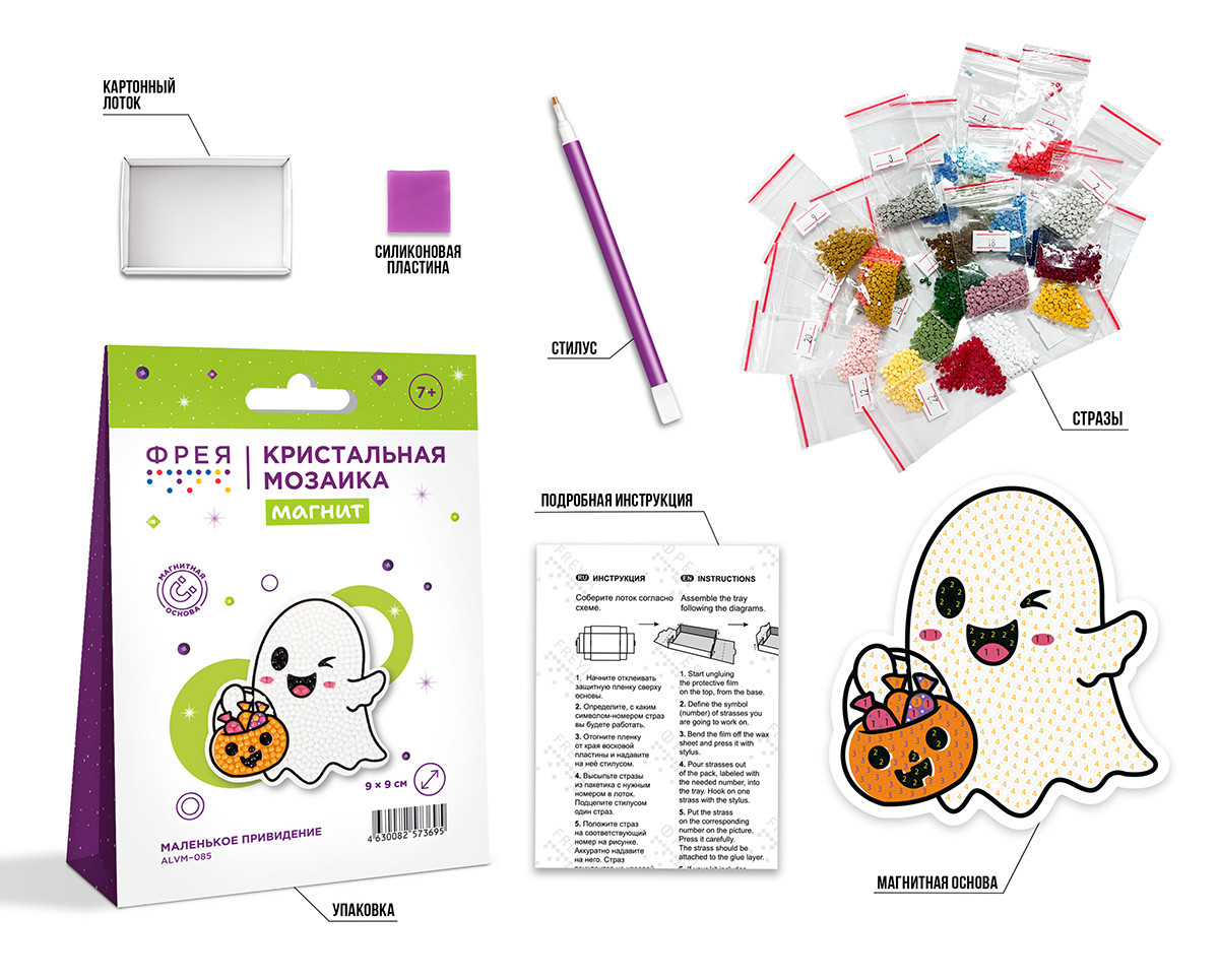 Кристальная ( алмазная) мозаика " ФРЕЯ" ALVM- 085 магнит " Маленькое привидение" 9 х 9 см