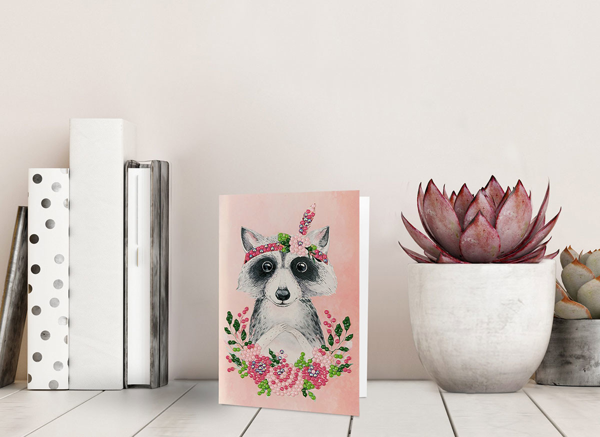 Кристальная ( алмазная) мозаика " ФРЕЯ" ALVO- 602 открытка " Енотик с цветами" 10. 5 х 14. 8 см